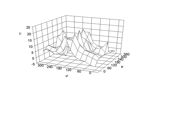 для модифицированного дипептида tyr-trp (см.рис.1). Области изменения углов от -360 до 360о